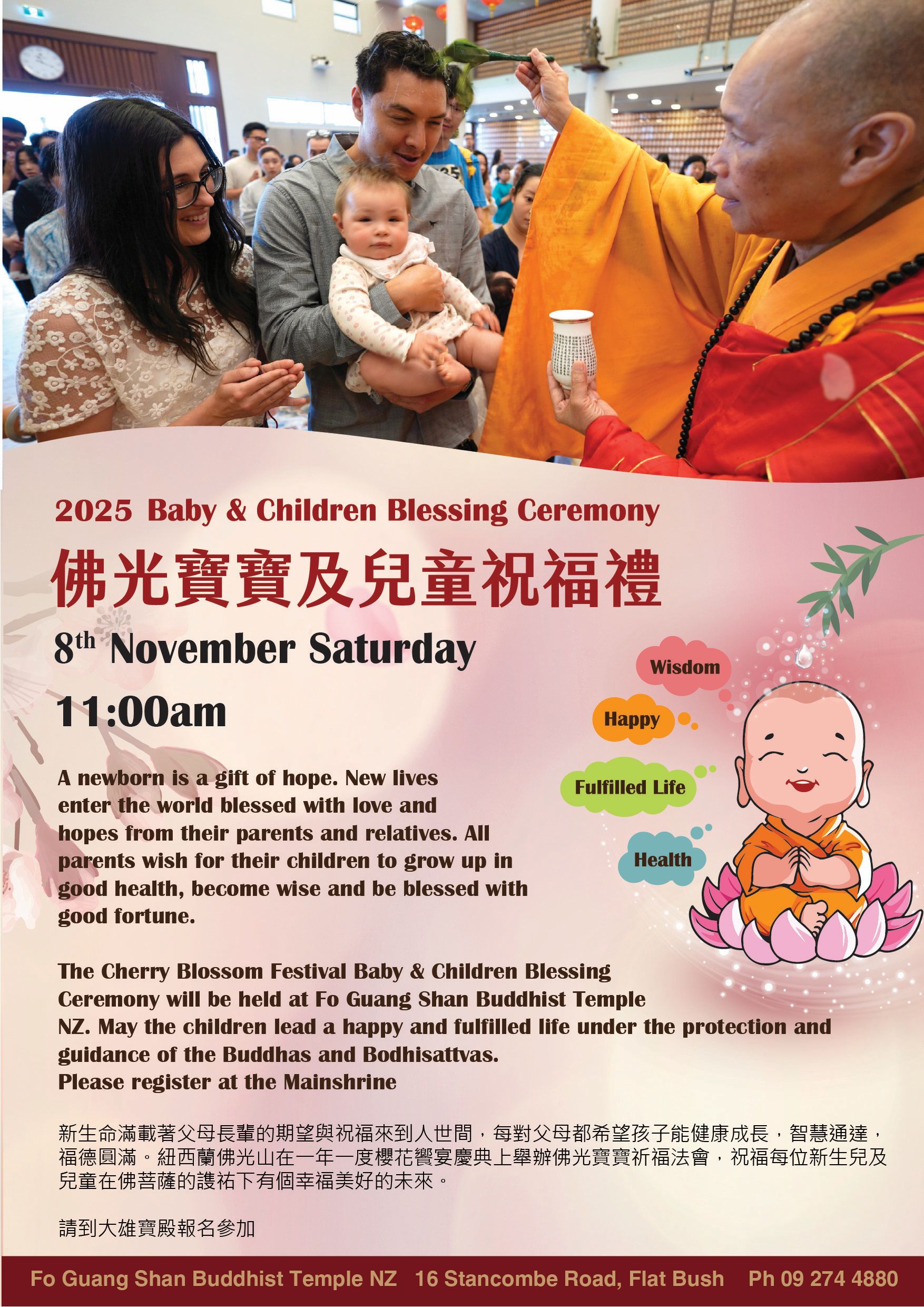 The Cherry Blossom Baby & Children Blessing Ceremony will be held at Fo Guang Shan Buddhist Temple NZ. May the children lead a happy and fulfilled life under the protection and guidance of the Buddhas and Bodhisattvas.