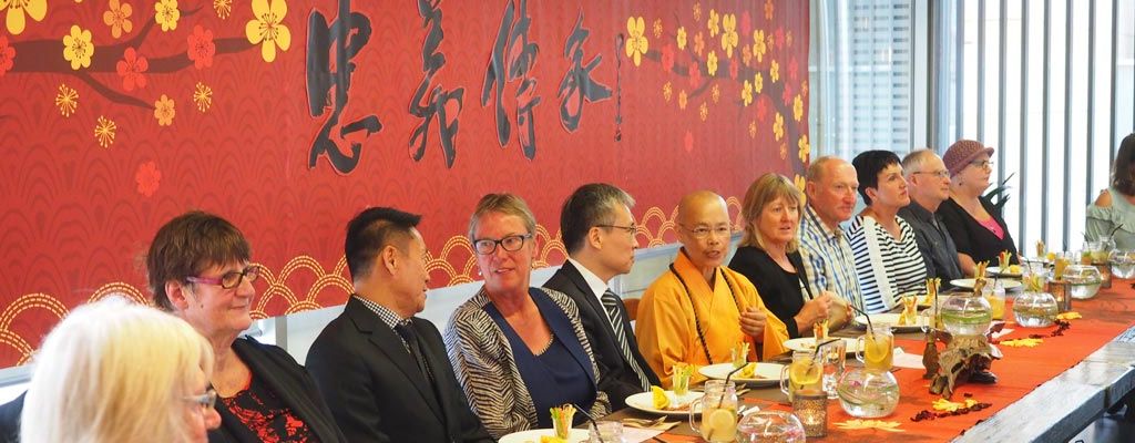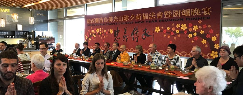 On 10th February 2018, FGS South Island organised a Chinese New Year Reunion Dinner with 200 people consisting of devotees, friends of FGS and members of BLIA South Island, gathered at FGS Temple South Island to enjoy a specially prepared vegetarian meal. Among those in attendance were Member of Parliament Hon Ruth Dyson, Halswell-Hornby-Riccarton Community Board deputy chairwoman Helen Broughton, Consul General of the People’s Republic of China in Christchurch Wang Zhijian, former NZ Police Virginia Le Bas and spouse, Vice President of International Breast Cancer Paddlers Commission Meri Gibson, Christchurch International Artists Mr.and Mrs. Keith Morant, Sculptor Paul Deans and spouse, Christchurch Artist Coral Harnett, and BLIA South Island President Bernie.