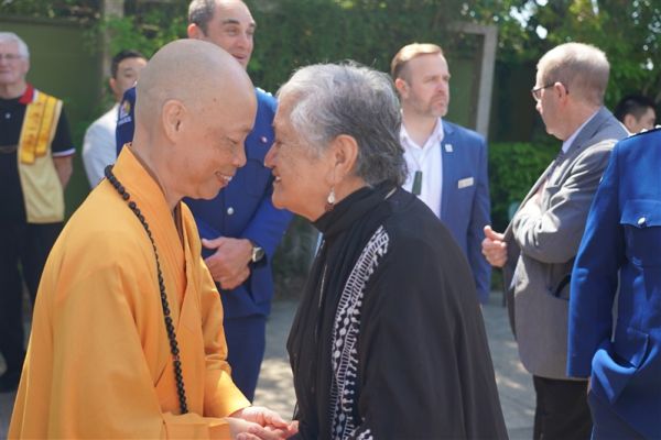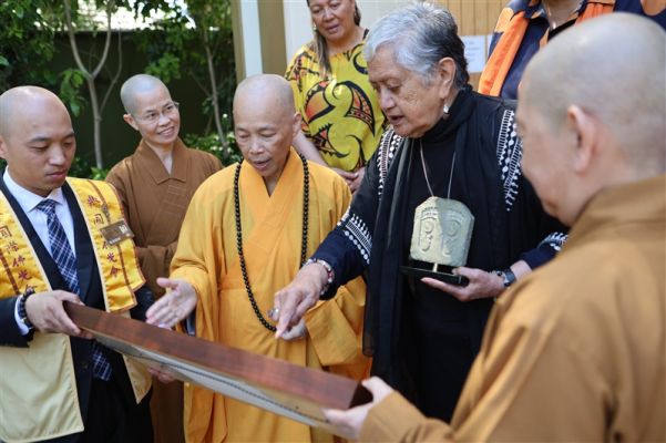 The ceremony was personally led by Māori elders John Dobson and Taini Drummond, expressing the deep respect and longstanding friendship the Māori community holds for Fo Guang Shan over the past 20 years. It symbolised the meeting and mutual trust between the spiritual values of indigenous Māori culture and the spirit of Humanistic Buddhism. During the ceremony, Abbess Manshin respectfully greeted the elders in Māori and recited the prayer by the Founder of FGS Buddhist Order, Venerable Master Hsing Yun, offering blessings for the courage to face challenges, patience through adversity and diligence in taking responsibility. The prayer also encouraged gratitude for causes and conditions, joyful giving and the cultivation of compassion and kindness.