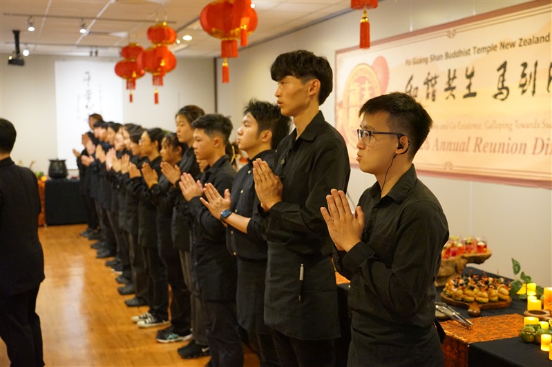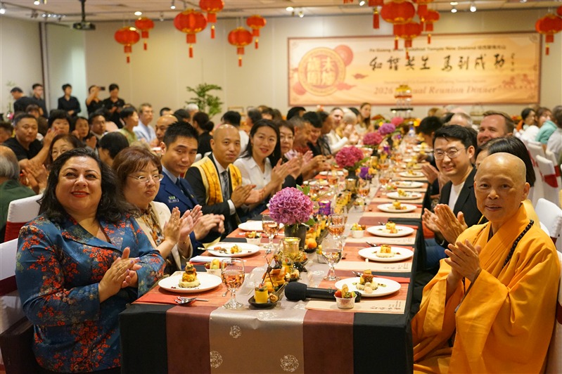 On 7th February 2026, FGS Buddhist Temple Auckland held its annual Reunion Dinner. Led by Abbess Manshin of FGS NZ, the event welcomed distinguished guests including MP for Takanini Rima NAKHLE, Director General Kendra CHEN of the Taipei Economic and Cultural Office (TECO) in Auckland, List MP Nancy LU, Shift Commander Inspector Anson LIN of Northern Communication Center, Howick Local Board member Damian LIGHT & Adele WHITE, Associate Professor Zhubin XIE from Northwest University China and doctoral student Xinyu ZHAI. They joined more than a hundred BLIA members, including President Evelyn KU of the BLIA North Island Chapter, Chief Advisor Lintao YU and advisor Sally WONG, for a warm reunion dinner.