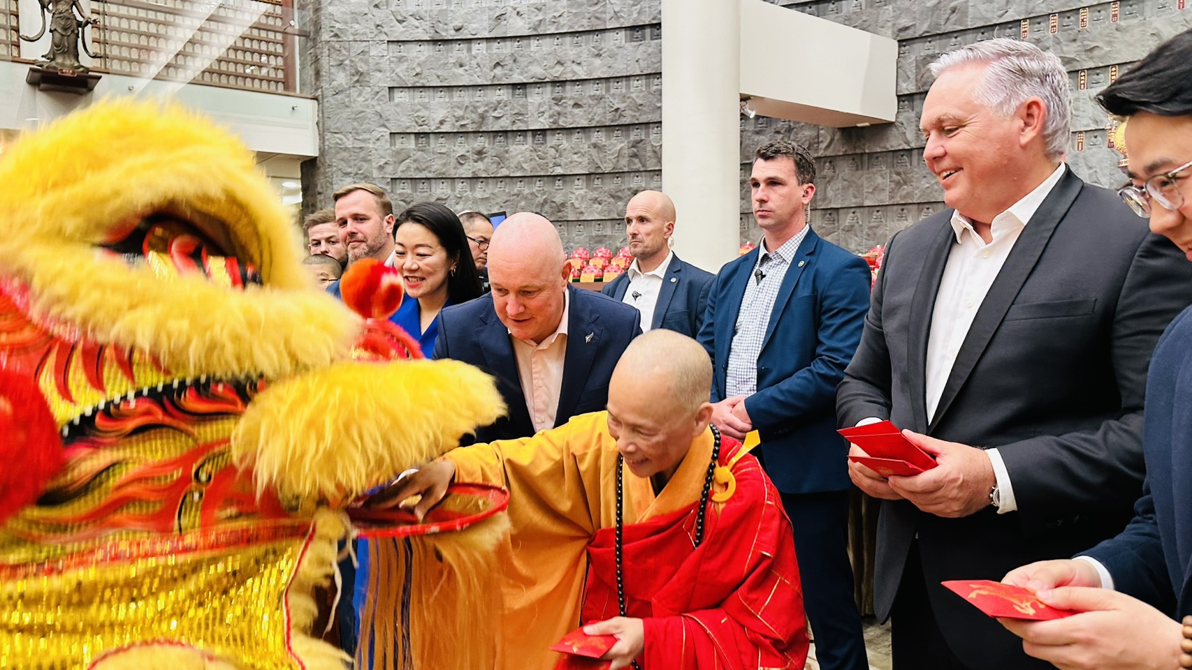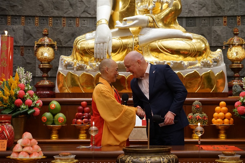 Abbess Manshin and Prime Minister LUXON then distributed auspicious New Year red envelopes prepared by the Temple. The Prime Minister conveyed his sincere blessings to all present and spoke highly of Fo Guang Shan’s long-standing commitment to the community, praising the professionalism and selfless service demonstrated over many years. He commended Fo Guang Shan for bringing together people from diverse communities, and for injecting a warm, stable and positive force into New Zealand society. The Prime Minister emphasised that New Zealand is full of potential and hope, and that only by upholding the spirit of harmony and coexistence, alongside diligence and enterprise, can a more prosperous future be created for the next generation.