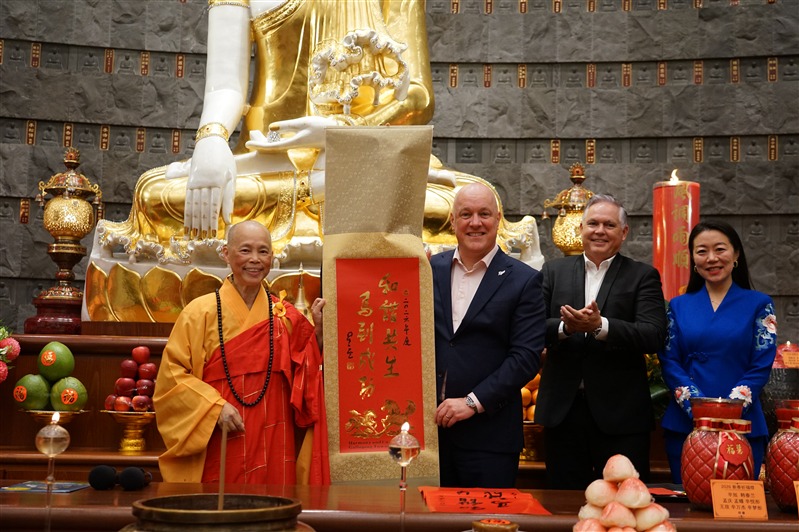 Fo Guang Shan Buddhist Temple New Zealand celebrated Lunar New Year’s Eve on 16 February 2026, welcoming over 5,000 people for a vibrant New Year countdown to greet the Year of the Horse. New Zealand Prime Minister Rt Hon Christopher LUXON came to celebrate with everyone, joined by Minister of Police and Minister for Ethnic Communities Hon Mark MITCHELL, List MP Nancy LU, Manukau East Neighbourhood Policing Team Sgt Richard BRACEY, Howick Local Board member Damian LIGHT and Associate Professor Zhibin XIE from Northwest University, extending New Year greetings to the people.