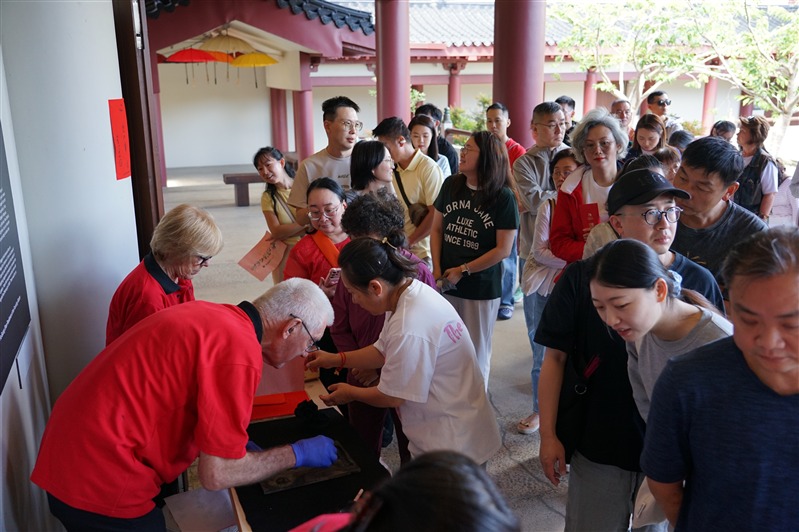 Visitors queued throughout the courtyard to receive auspicious New Year red envelopes bearing the blessings of Venerable Master Hsing Yun. The Temple offered its heartfelt wish that all who received them be graced by the Master’s wisdom and bring lasting peace and harmony to their homes.