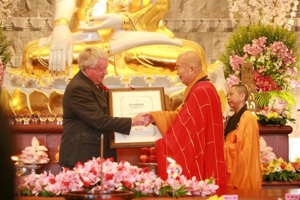Sir Barry CURTIS remains the longest-serving mayor in the greater Auckland region. Over his 24 years as Mayor of Manukau, he dedicated nearly four decades of public service to the people of Manukau and Auckland. When FGS Buddhist Temple Auckland was being established in 2003, Sir Barry gave his wholehearted support. In 2007, when the Founding Master of FGS, Venerable Master Hsing Yun visited New Zealand to preside over the Temple’s consecration ceremony, Sir Barry was present to witness this important moment in history.