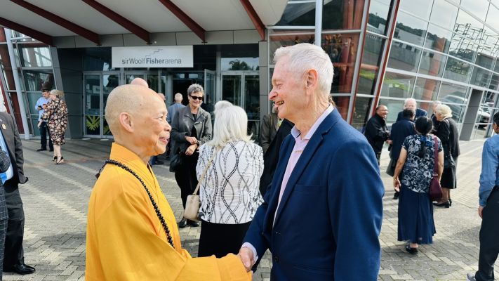 Former Manukau City Mayor Sir Barry CURTIS passed away on 30th March 2026, at the age of 87. A farewell service was held on 10 April at the Due Drop Events Centre. Abbess Manshin of Fo Guang Shan New Zealand was invited to offer Buddhist prayers and blessings for Sir Barry, joined by Venerable Rulian, Minister in Charge of FGS Auckland, President Yulin KU of BLIA North Island and BLIA members.