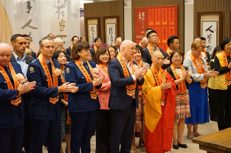 To mark the 60th anniversary of Fo Guang Shan and the 100th anniversary of the Founder Venerable Master Hsing Yun’s birth, Fo Guang Yuan Art Gallery Auckland held the grand opening of the FGS commemorative exhibition, Passing the Lamp of 60 Years, Honouring a 100-Year Legacy on 11 April 2026. More than 100 guests attended the opening ceremony, distinguished guests included Curator Abbess Manshin of FGY Art Gallery NZ, Prime Minister Rt Hon Christopher LUXON, Deputy Commissioner Jill ROGERS of New Zealand Police, Dr Amanda Dixon MCLVER, District Commander Superintendent Shanan GRAY of Counties Manukau, Director General Kendra CHEN of the Taipei Economic and Cultural Office in Auckland, Area Commadner Inspector Rodney HONAN of Counties Manukau East, President Yulin KU of BLIA North Island and Shift Commander Inspector Anson LIN of Northern Communication Center.
