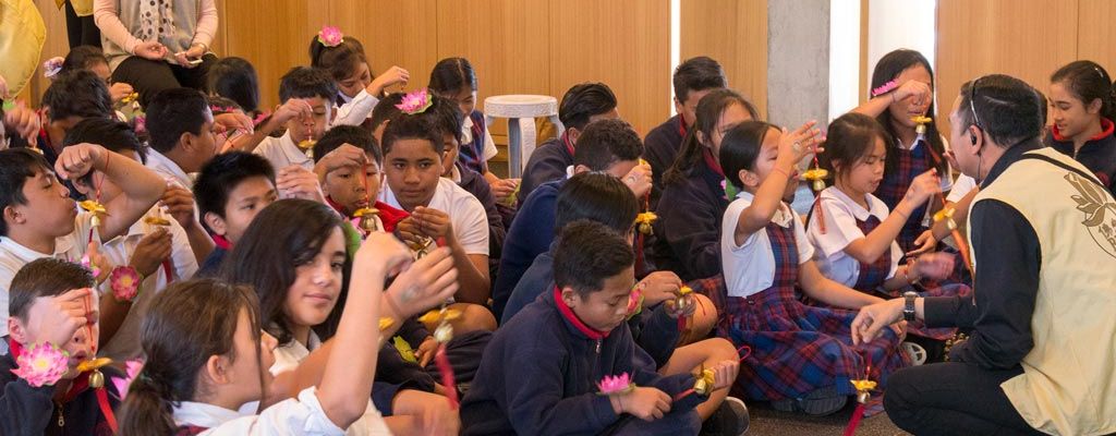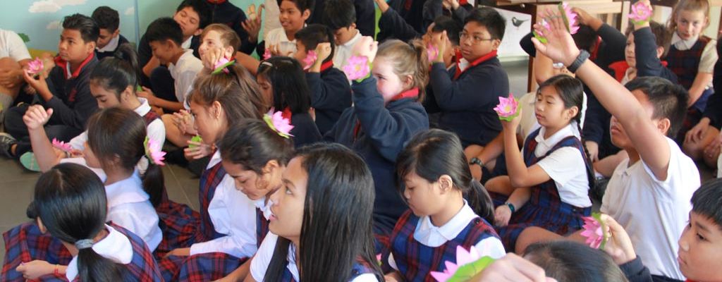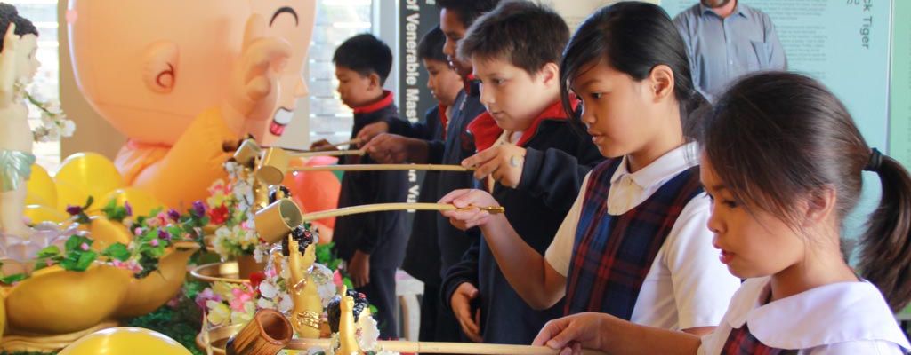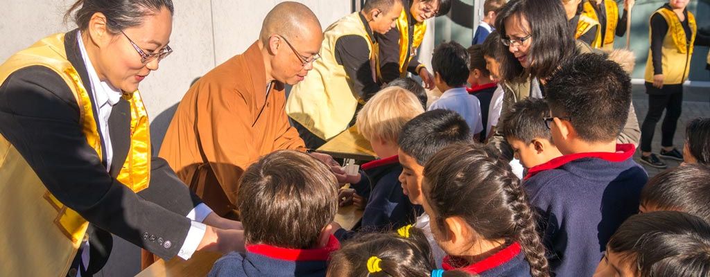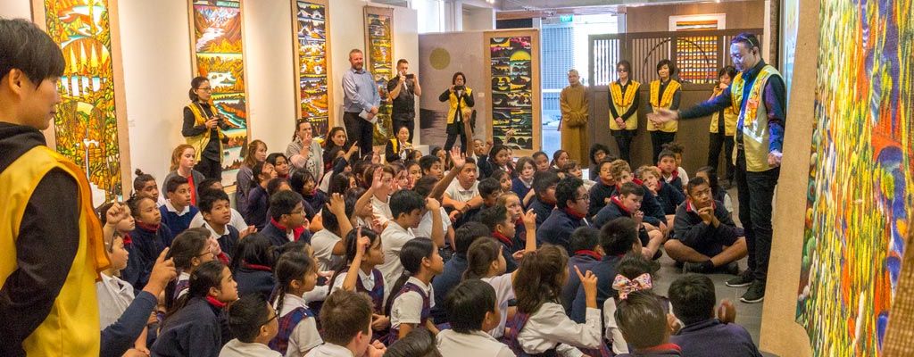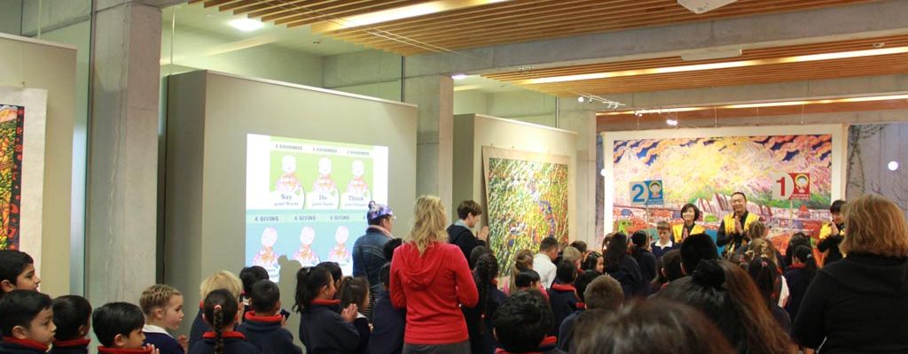 While Fo Guang Shan (FGS) North Island New Zealand (NZ) started their fifth “3 Goodness and 4 Giving Festival of Cultural Sharing”, FGS South Island started the festival from 21 until 23 May, 2018 for the first year. On the first day of this festival, Sacred Heart School principal Frank McManus led around 180 students into participating this event.