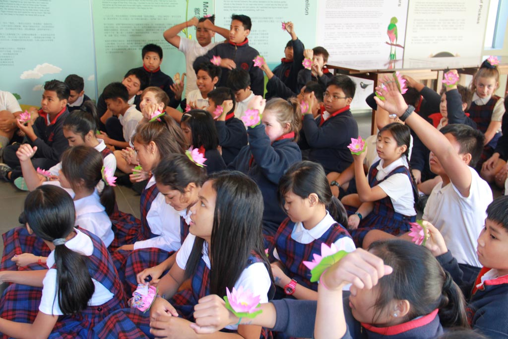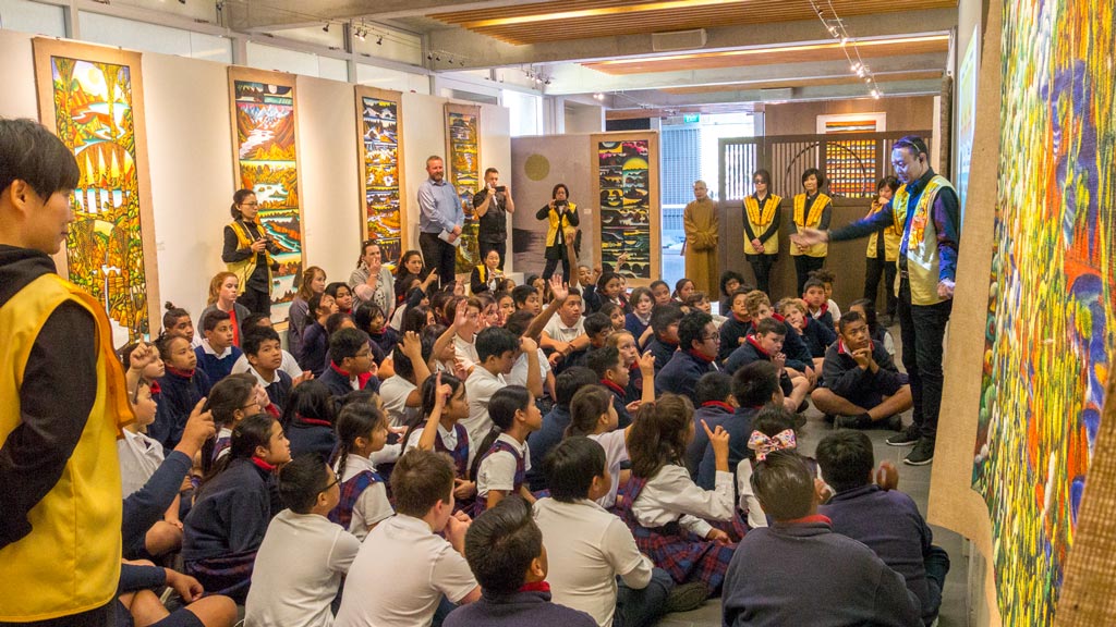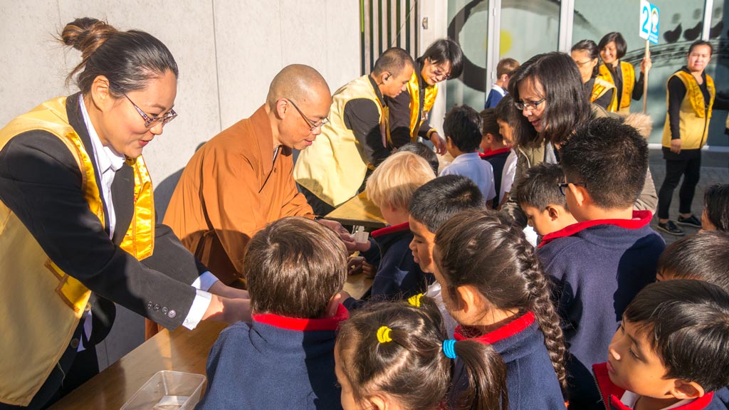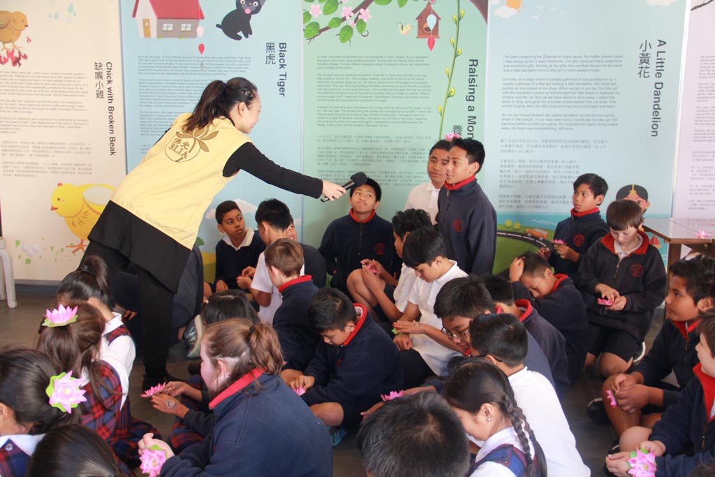 While Fo Guang Shan (FGS) North Island New Zealand (NZ) started their fifth “3 Goodness and 4 Giving Festival of Cultural Sharing”, FGS South Island started the festival from 21 until 23 May, 2018 for the first year. On the first day of this festival, Sacred Heart School principal Frank McManus led around 180 students into participating this event.