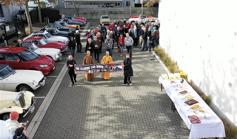 On 21st July, the British MG vintage car members from Christchurch brought their beloved vintage cars to Fo Guang Yuan (FGY) Art Gallery Christchurch, creating a rare MG Classic Car Show. The large fleet of cars and eye-catching car shapes were a big hit. Di and Dren Errington were one of the couples who took part in the vintage car show, and they sent a letter of appreciation on 28th July, thanking FGY Art Gallery Christchurch for all the support and hospitality on that day.