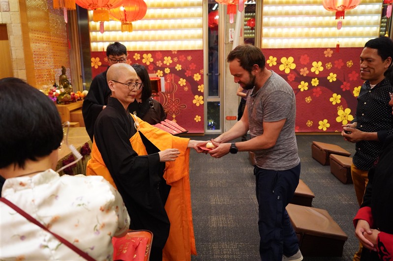 The devotees thanked the temple for arranging the events with such attention to detail, making it a very memorable day for everyone. To the Chinese community living here, overseas from their family, it was a very touching experience to be in the company of family and friends at the temple on Chinese New Year’s Eve. To other foreign expats, having the opportunity to be part of such a culturally significant day was something to be happy for. To the Westerners in New Zealand, it was a truly amazing experience to be able to experience something a little different from another culture. Mophie Hung from Taiwan attended the day’s event with her Kiwi boyfriend Cameren who came for the first time to a Chinese New Year’s Eve event. He was honoured and very happy to be able to learn about traditional Chinese festivals, and appreciated all the little gifts he received over the course of that evening.