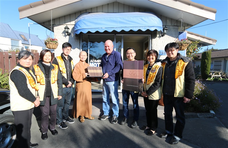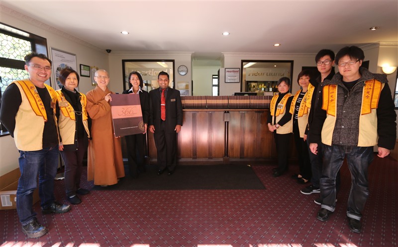 In 2015, Fo Guang Shan (FGS) NZ Venerable Abbess Manshin launched the Sharing Wisdom with Travelers book donation campaign across the North and South Islands of New Zealand, with Buddha’s Light International Association (BLIA) members forming teams to deliver copies of Master Hsing Yun’s 366 Days book all over the country. The team traveled over 23,000 kilometers across 200 NZ cities and towns in two years, delivering books to 700 hotels, hospitals, prisons, nursing homes, clinics, libraries, schools, etc. The team delivered over 20,000 books, spreading Master Hsing Yun’s wisdom throughout New Zealand, sending love and warmth into the community.