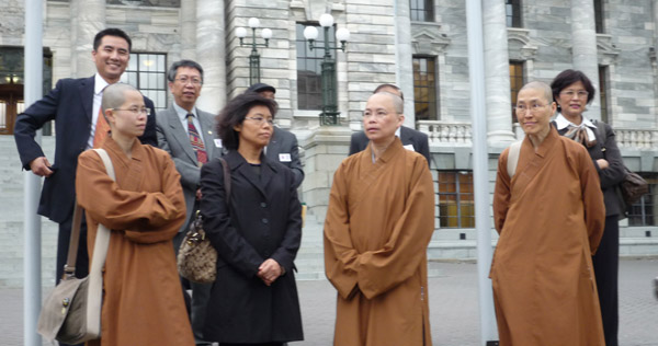 Prior to the beginning of the event, Police Strategic Advisor of New Zealand, Mr. Kefung Chu arranged a tour of the Parliament for the temple representatives. Buildings visited included a library of Gothic architecture which was built in year 1897, the British Renaissance style meeting building built in year 1922 and the famous contemporary “beehive” cabinet office, which was established in the year 1970.