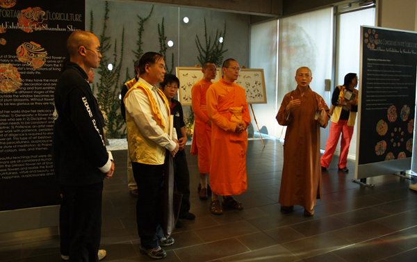 The guests were taken to the Buddha Hall, where they offered incense to the Buddha. Following on, the guests toured around the building and admired Shan Shan Hsiao’s Pressed Flower Exhibition at Fo Guang Yuan Art Gallery.