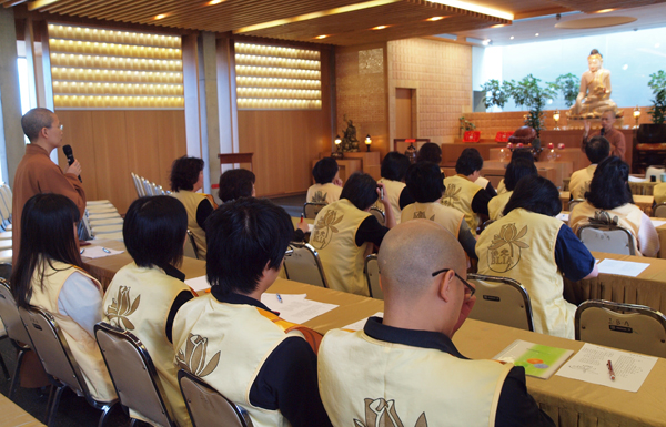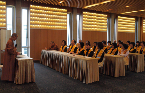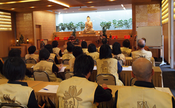 New Zealand Buddha’s Light International Association (BLIA) South Island conducted the second BLIA member lecture on 27th March which invited Fo Guang Shan New Zealand Venerable Abbess Manshin as speaker. BLIA President, vice president, staffs and more than 30 members have joined this lecture class. Abbess conducted the lecture said that: Venerable Master Hsing Yun implemented, promoted humanistic Buddhism and establishes BLIA around the world, to encourage the devotees approach and propagate the Buddhism. Together protect dharma and venerables as our duty. Abbess also used the interview question from TV One presenter “What is humanistic Buddhism?” and seek the understanding from every member. Some gave inspired, creative answer that shows their multi-sided and bountiful mind of BLIA members. Abbess encourages members must plenitude themselves and known their unable, unknown and self improve, self educate to represent Fo Guang Shan with pride. Member must contains the vow and spirit of “Can’t bear the suffer of sentient being, can’t bear the decline of great religion.” As a BLIA member, we must have the spirit of propagate the Buddhism start within me and dedicate our heart and energy to Buddhism. At the end, Abbess teaches members to sing a Buddhism song to bring up the passionate of every BLIA members.