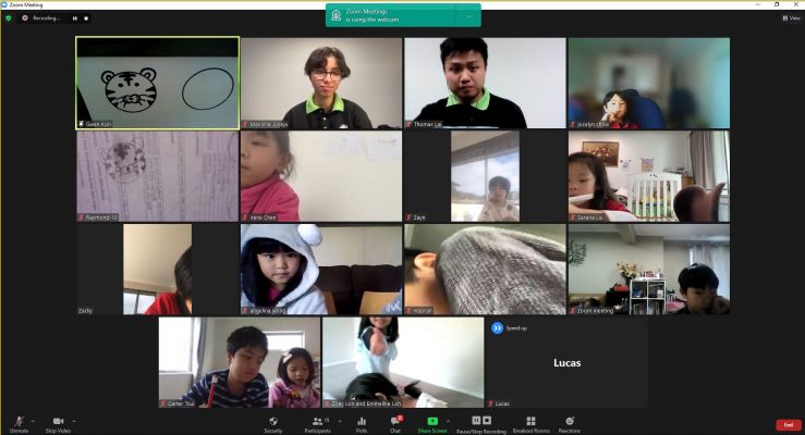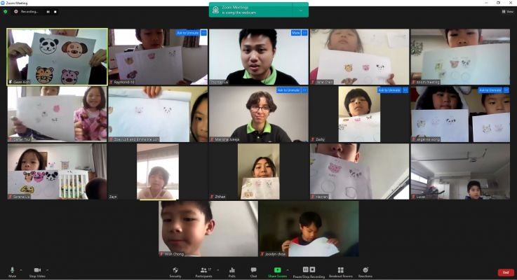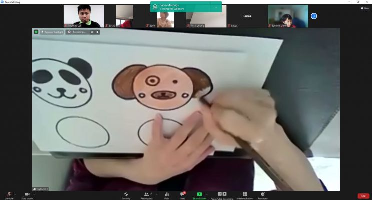 This class was led by Manisha and Gwen, while Thomas was helping as technical support. The class started with the chanting of Xi Fa Pu Ti Xin(悉發菩提心), which is a regular activity done in every children dharma class implant Bodhi seeds in these young students. Gwen Koh then carried on the class by doing the doodling, which is an interacting drawing session to train the focus of the students and the ability to pick up information through drawing cute animals.