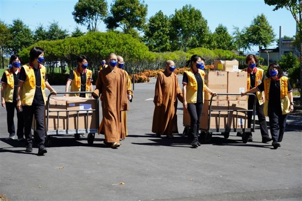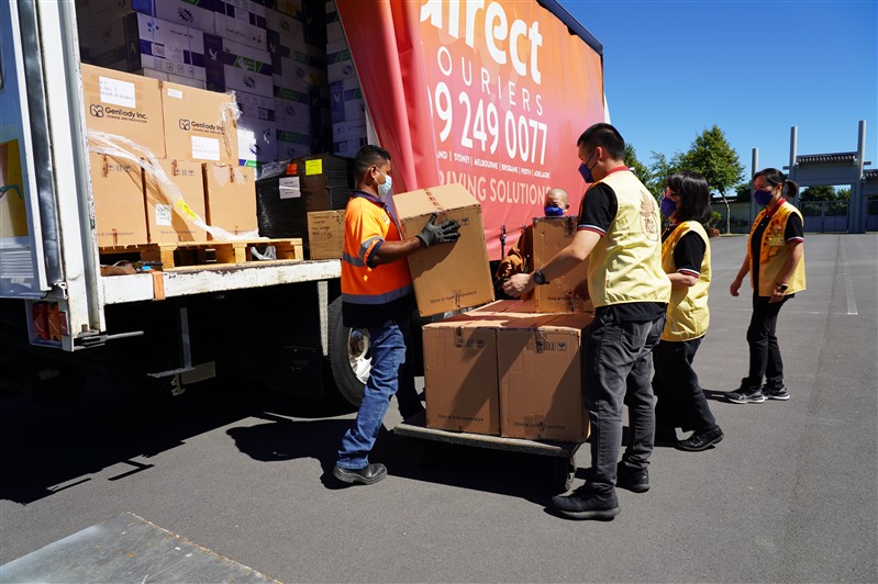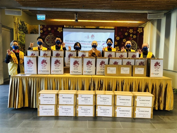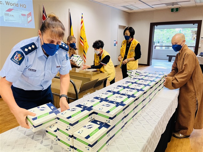 The 15,000 RAT Kits sponsored by Buddha’s Light International Association World Headquarters from Taiwan had arrived at Fo Guang Shan Buddhist Temple Auckland at 1 pm, 14 March 2022.