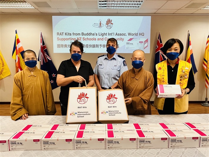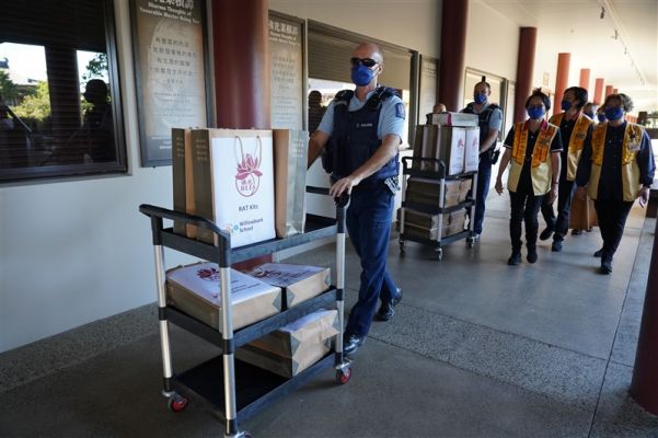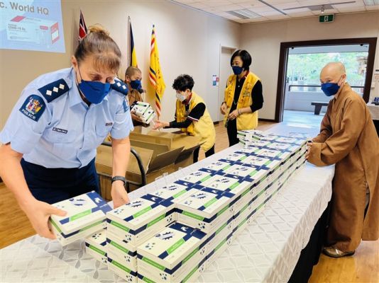 Within the week of 14th – 18th March, nearly 100 schools have received 15,000 kits both in Auckland and Christchurch. The schools were grateful for the supplies as they expressed their desperate need for RAT kits during this challenging time. School principals and teachers are extremely appreciative of the Temple and Police, who care and provide enormous support on time.