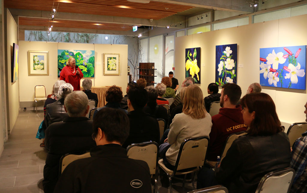 After the talk, the audience spent some time appreciating the paintings. They were full of praises for the lifelike flower portraits painted and expressed the views that the painted portraits were simple and not pompous, which made them pleasing to look at. Some of the audience found rhythm and positive life force emanated from the flower portraits; some experienced warmth from the colours of the flowers and some could even smell the fragrances of the flowers!