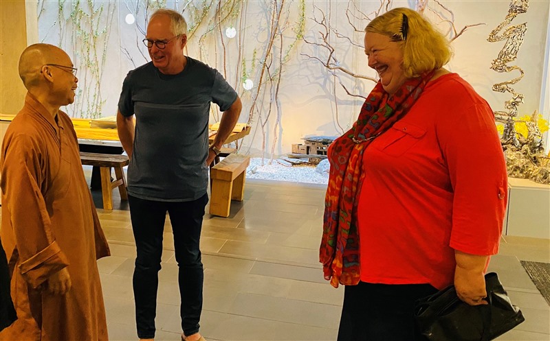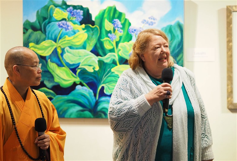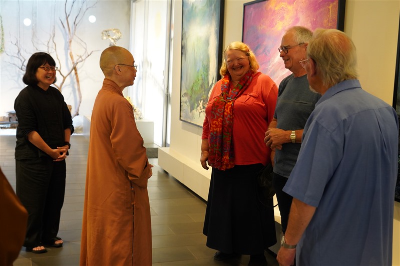On 16th June 2021, New Zealand artist Sarah Deans, along with cousin Paul Deans and friends, visited Fo Guang Yuan (FGY) Art Gallery Christchurch, and they were welcomed by Gallery Curator Venerable Abbess Manshin. In 2018, Sarah Deans, a member of Christchurch’s Deans family, held a Solo Exhibition the Flower Portraits and conducted a Sharing Session at FGY Art Gallery Christchurch. The audience who attended the Exhibition then spoke highly of Sarah’s paintings and praised her for her profound artistic talents. Since then, Sarah had joined and become a Friend of FGY, and often came to the Gallery to visit various exhibitions. Every of her visit was able to fill Sarah with joy and impart her with positive energy.