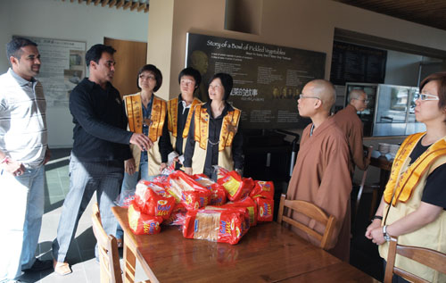 基督城Jasol公司的Viney Kumar和Dev於24日經過「紐西蘭佛光人賑災服務中心」看到免費提供熱食給大衆,把所有在公司的新鮮麵包捐獻給佛光賑災中心與大衆結緣。住持滿信法師感謝他們在這危難的一刻,用最實際的行動協助大衆度過難關。