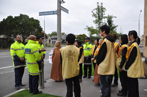 警監Wallace Haumaha等人表示這是地震以來享用到最好吃的一餐,並分享警方正救災中的工作情況,警監表示目前正在為罹難者辨別身分,希望能儘快讓往生者與家人團聚;並邀請住持參加隔天26日在Burnside High School為受困於CTV建築物的失從亞裔家屬舉辦的說明會,到時將有50餘名家屬從日本和亞洲各地前來出席,了解救援進展。其他宗教與亞裔社區領袖代表亦會前往現場為家屬提供心靈慰藉。住持表示將偕同30名佛光人前往支援,竭盡所能與警方合作,為災民送上溫情。
