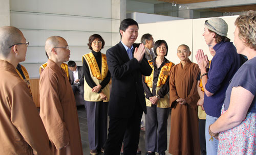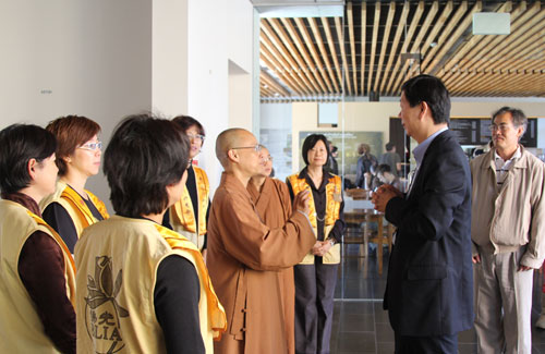 住持滿信法師為常代表說明「紐西蘭佛光人賑災服務中心」的宗旨,以及三日來國際佛光會世界總會與全球佛光人對基督城災情的關心與實際救助的內容。常代表曾駐席加拿大、非洲、印度等多國,與佛光山互動良好,更明白佛光人的服務精神,他非常感謝星雲大師及佛光人對此次救援所作的奉獻與服務。