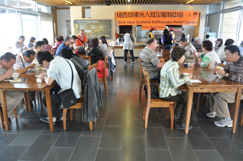 消防與救援隊義工Tia於2月28日攜帶災民Christ前來服務中心領取賑災物品給予在地震中去失家園的災戶。Christ 居住在災情較嚴重的Walthan 和New Brighton 地區, 原本他是前往另一個國際賑災組織領取食物,但是過度擁擠, 於是轉至佛光人服務中心領取熱食及所需醫療物品等,服務中心寧靜祥和的氣氛與其他賑災中心有天壤之別, 令他感覺溫馨平靜, 佛光義工團隊的友善和積極協助更令他感動, Christ表示將攜帶其他受災者前來用餐, 希望透過此地祥和寧靜氣氛轉化災民能量。