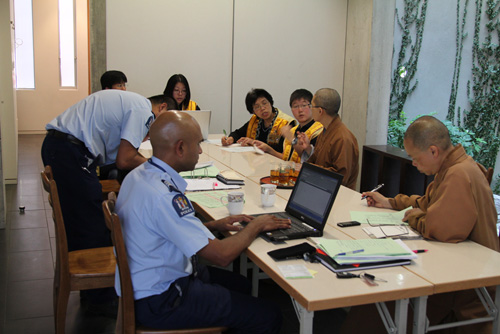 紐西蘭警政署的種族策略顧問(National Strategic Ethnic Advisor)及負責其他國家地區的警官共5人,在佛光人服務中心內的臨時辦公室進行救災相關工作,而佛光人更協助警官們製作海報、協助翻譯文件資料。警官表示因為有了佛光團隊的服務,事情進行得更有效率,讓他們在與各國的家屬開會時,更能提供足夠的說明與資料。