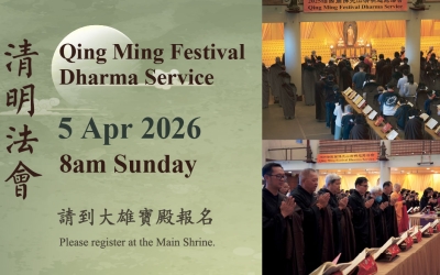 「炮竹一聲除舊歲,迎春納福喜洋洋」。新春年節即將來臨,本寺於2026年2月16日啟建除夕辭歲延生普佛法會,祈願大眾平安吉祥,諸事圓滿,社會祥和,經濟穩定,世界和平。歡迎大眾回寺拈香禮佛,同霑法益。