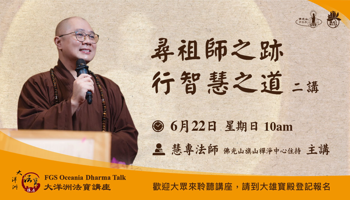 慧專法師多年追隨星雲大師腳步,在生活中尋祖師之跡,體悟慈悲與智慧教誨,行智慧之道,處處皆是磨練自我的道場。星雲大師叮嚀他「安住發心、道念、學習、體諒」,這份師徒情誼,讓慧專法師在弘法路上轉挑戰為力量,成就自我、利益眾生。