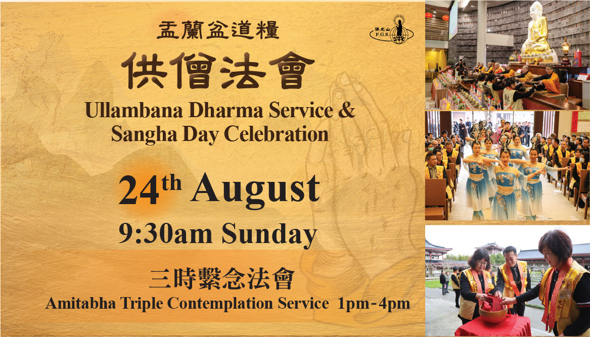 In order to celebrate the annual Ullambana Festival, show our appreciation to the monastery’s generosity and kindness, and to cultivate the fields of merit, FGS NZ will be organizing a Ullambana Dharma Service & Sangha Day Celebration on 18th August. This event is open to the public with hopes to spread joy to everyone’s heart and develop good affinities with others.