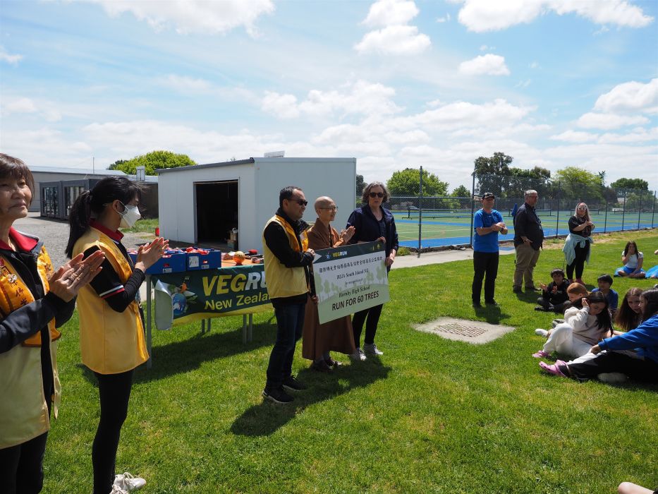 On the 10th November, Fo Guang Shan Buddhist Temple Christchurch and BLIA South Island held the 2023 VEGRUN, the Global Veg-revival Virtual Community Run which launched by Taiwan iPure Green Foundation. The event took place at Hornby High School in Christchurch, with Principal Iain Murray, Vice-Principal Karen Wheeler, and over 230 students participating.