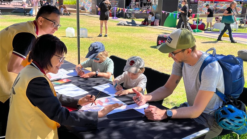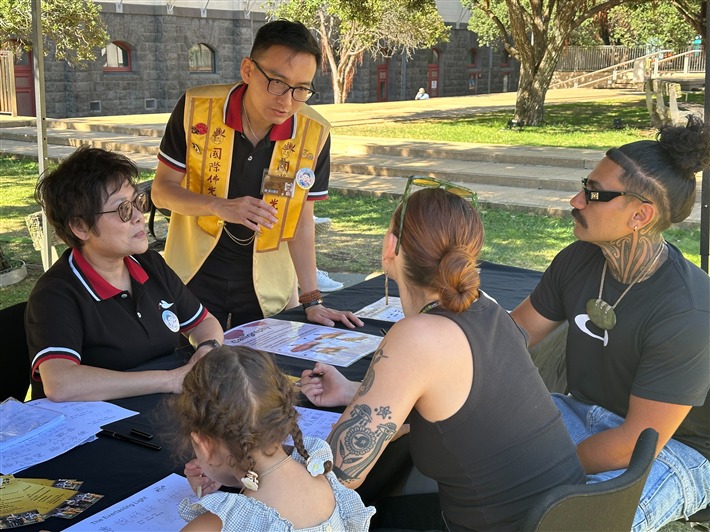 The 2025 Auckland Arts Festival (Te Ahurei Toi o Tāmaki) was in full swing amidst the height of New Zealand’s summer. On 9th March, the festival organisers invited Fo Guang Shan Auckland to participate in the Whānau Day, offering a cultural introduction to Chinese calligraphy. Abbess Manshin of FGS NZ, guided the BLIA team, stating: “Culture forms the foundation of education. By embedding cultural essence into community learning, BLIA members share the values of Three Acts of Goodness and Four Givings, spreading understanding and joy to society.