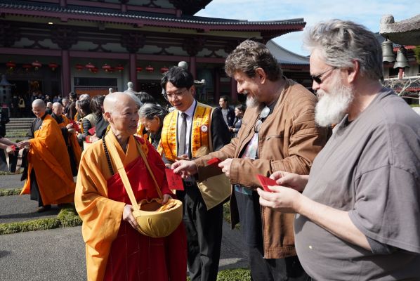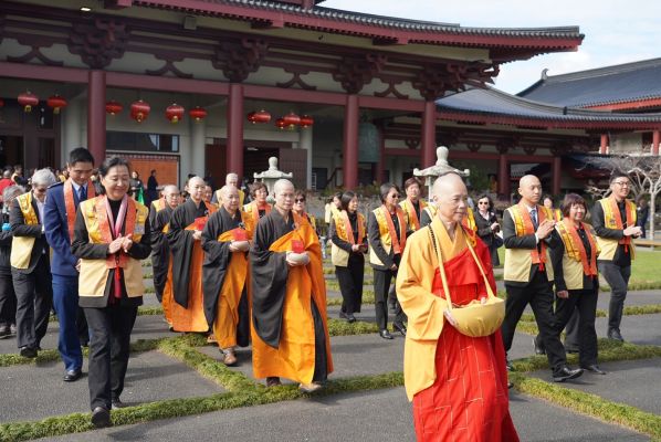 On 24th August 2025, Fo Guang Shan Auckland held a commemorative ceremony in honour of the Founder of FGS Buddhist Order, Venerable Master Hsing Yun, together with the Sangha Day Celebration. Abbess Manshin of FGS NZ led over 300 devotees gathered in the Main Shrine to recite sutras and pay tribute to the great kindness of the Founder. The BLIA North and South Island Chapters delivered an inspiring and heartfelt performance for the Sangha. Additionally, over 1,500 people gathered at the Temple for the Daffodil Rally Vintage Cars Show, where 14 Auckland vintage car clubs showcased 180 classic vehicles in support of the New Zealand Cancer Society. The wide range of activities reflected the spirit of Great Compassion with Oneness.