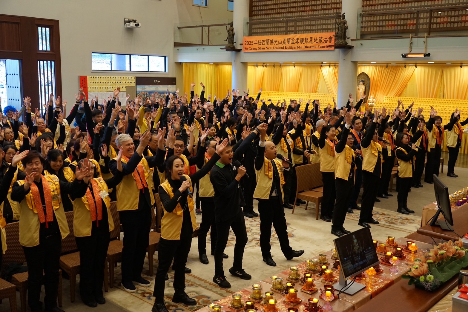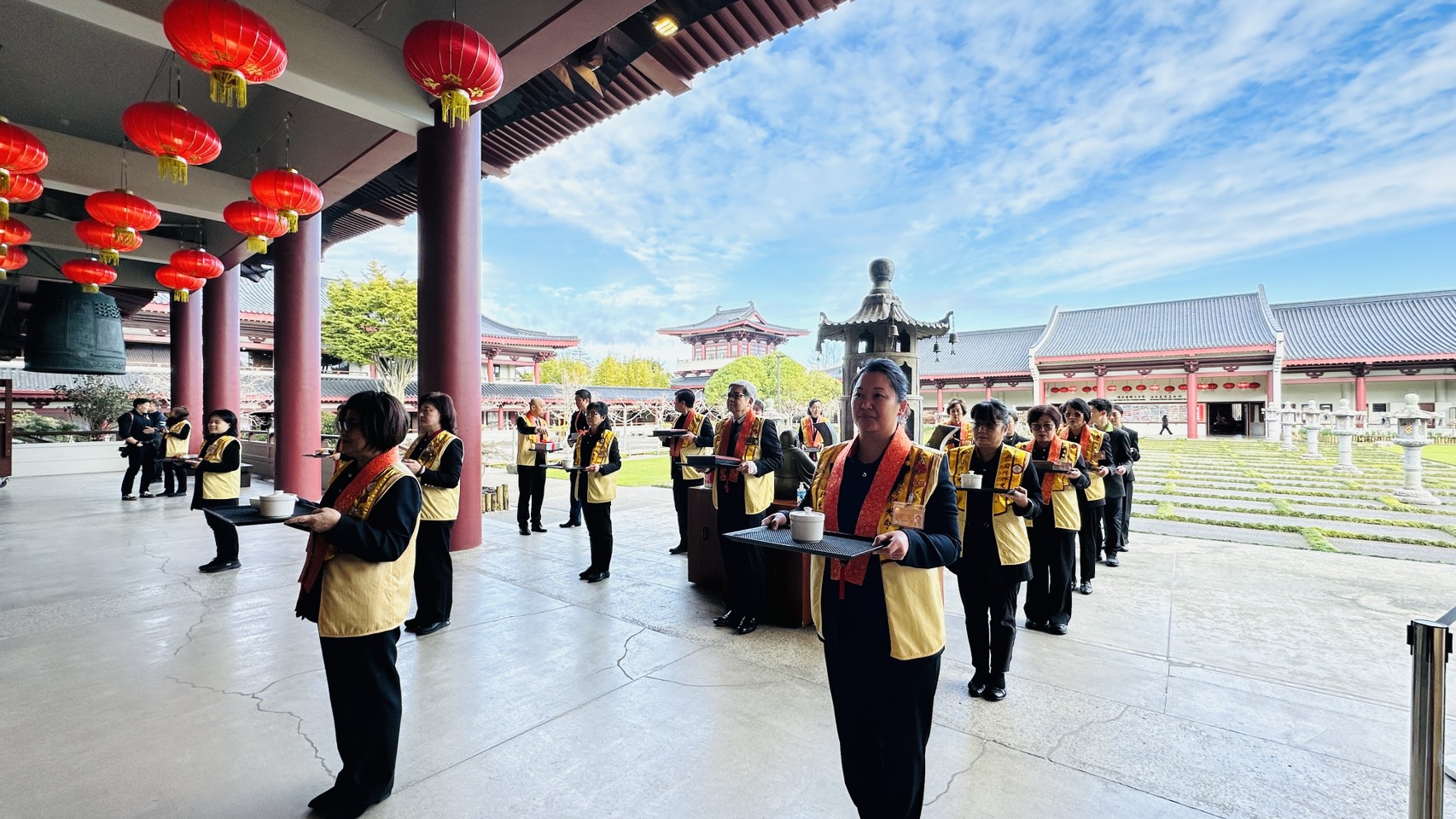 BLIA North Island President Evelyn KU shared that on this joyful day, members expressed their respect for the Sangha through performances and food, gratefully acknowledging the Dharma teachings from the monastics that inspire people to cultivate good values and benefit society. President KU encouraged everyone to cherish every opportunity to make offerings to the Sangha and to vow to safeguard the Triple Gem and the Temple.