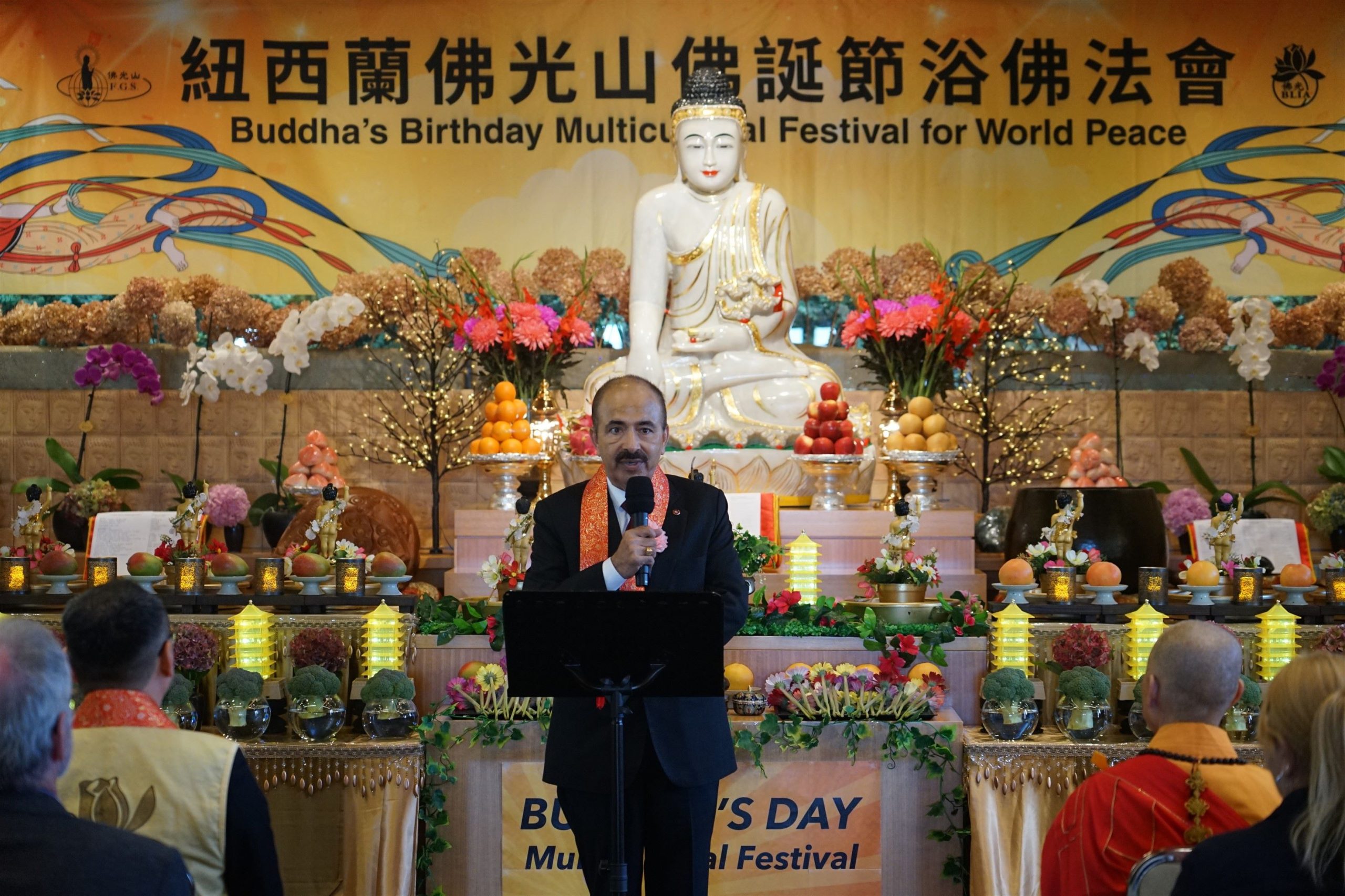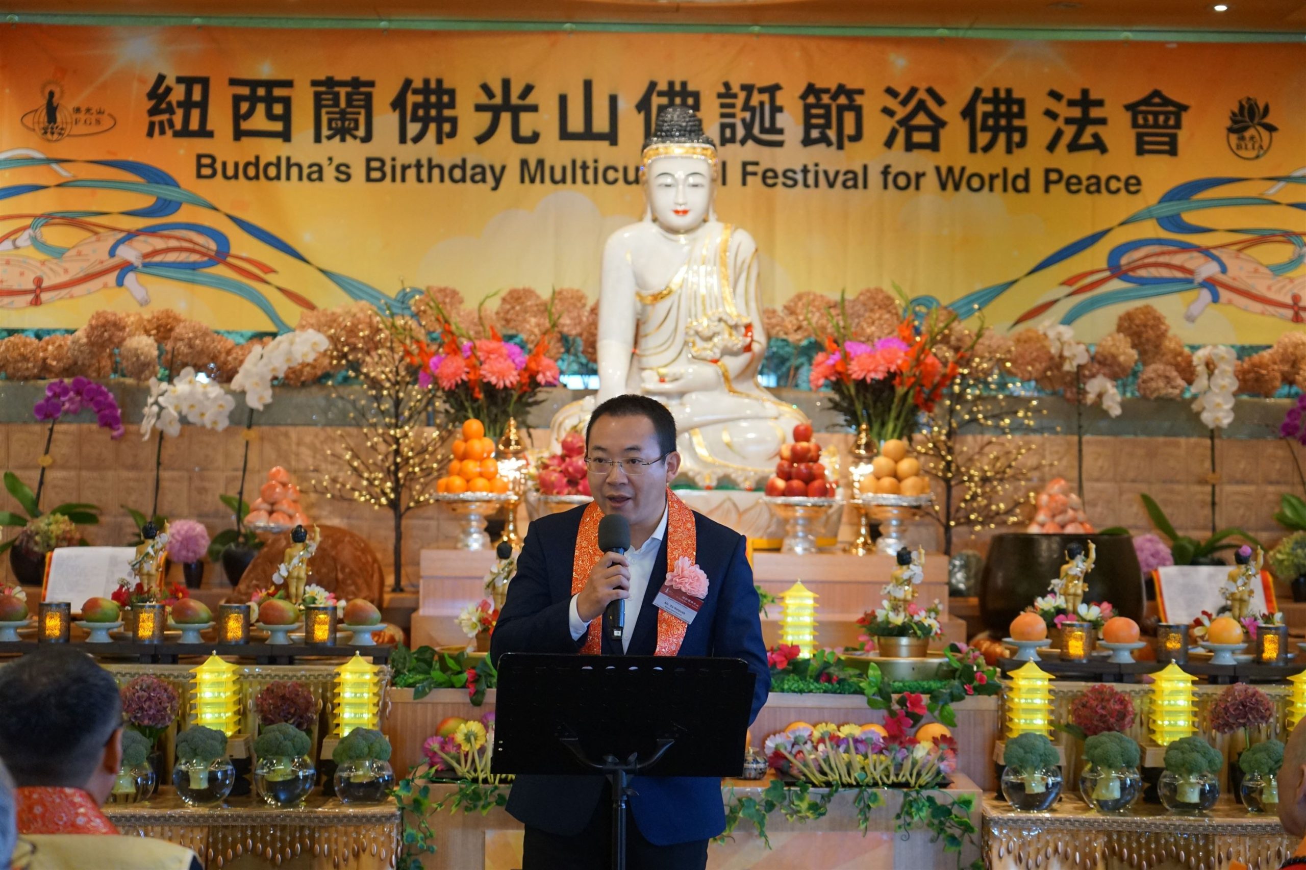 Deputy Consul-General Mr XU Haiyuan cited Venerable Master Hsing Yun’s words, Peace and happiness come from a tranquil heart and encouraged everyone to nurture love and compassion. He also thanked FGS for the long-standing efforts in promoting Chinese culture and spreading peace in the community.