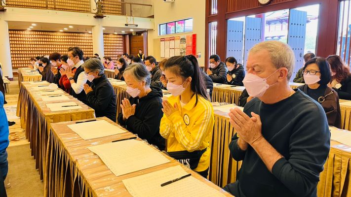 On 16th May 2022, there were 70 devotees at FGS Auckland participated in the Global Simultaneous Sutra Transcription to celebrate the Fo Guang Shan Monastic Order 56th Anniversary. Abbess Manshin led the devotees in transcribed the Sutra respectively, allowing the body and mind to stay in present.