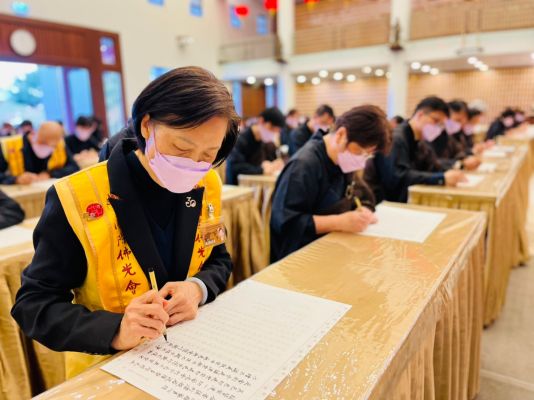 The Founder, Venerable Master Hsing Yun, compassionately explained the meaning of Sutra Transcription compassionately to the devotees through a video. He stated Sutra Transcription is one of the way of self-cultivation. During the process, one understands the gist of sutras and realized the Buddha’s compassion and wisdom.