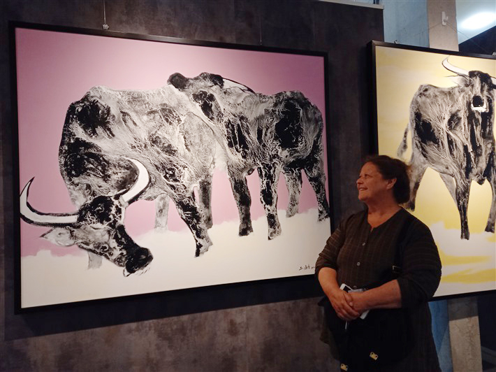 At the After A Thousand Miles Exhibition, New Zealand artist JK Weir was most impressed by the Ox series of paintings. She was of the opinion that this Ox series of paintings conveyed three main points: Respect for life (Respect), Passion for living (Liveliness) and Beauty of lines (Movement). Weir loved the painting Mother-Daughter Bond most. In the painting, Artist Wen-Jung Hsu portrayed very vividly the emotions and body lines of the Mother and Daughter Oxen. Also an artist herself, Weir felt that Artist Hsu’s artistic talents were unique and unparalleled. After her visit in January, Weir had been introducing the Exhibition to her students and friends. Weir’s students were amazed by Artist Hsu’s paintings and expressed their desire to learn Artist Hsu’s unique painting skills. Weir also brought her 90-year-old friend to the Exhibition. Her friend was very happy to visit the Exhibition and stayed there for a long time to appreciate the sculptures and paintings.