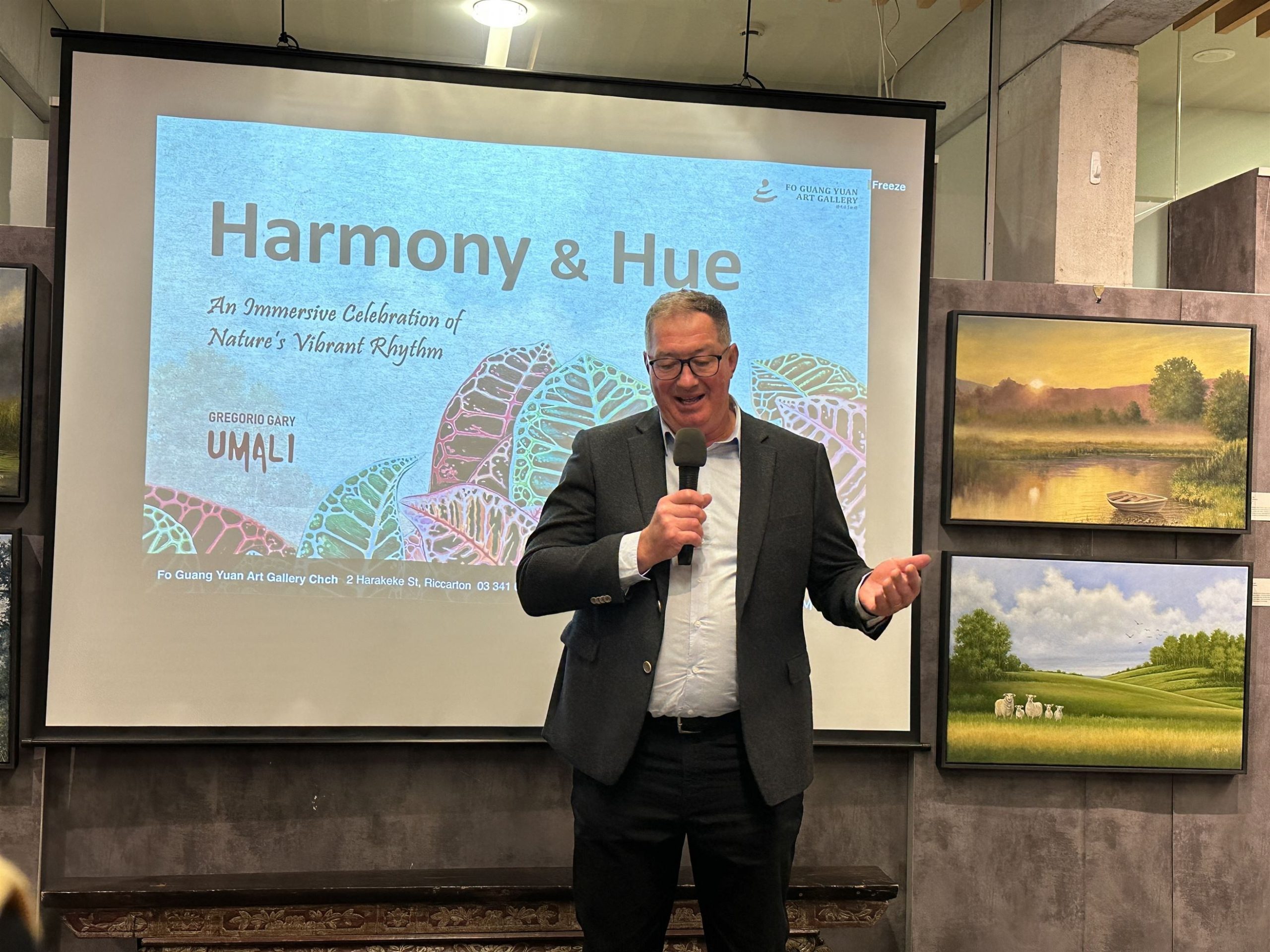 On 31 May, Fo Guang Yuan Art Gallery Christchurch held the opening ceremony of the Harmony & Hue Oil Painting Exhibition, by Artist Gary Umali. Distinguished guests in attendance included the Curator of FGY Art Gallery New Zealand Abbess Manshin, General Manager of Air New Zealand‘s Christchurch Engine Centre Graham Jack, Chief of Friends of FGY Art Gallery Gayel Marquet, Artist Leonore Ashby and nearly 300 attendees.