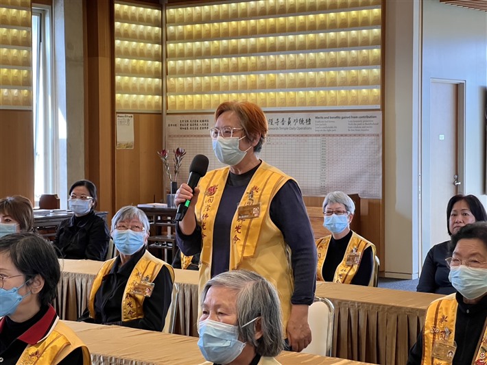 Venerable Juexi expressed her gratitude to the attendees for their efforts in organizing the books and sharing their personal experiences, which helped deepen their understanding of Buddhist teachings. She emphasised that the purpose of learning Buddhism is to discover the wisdom within oneself, overcome afflictions, and share the teachings with others. By practicing Buddhism with joy and spreading its message, it is possible to create a peaceful and harmonious society.