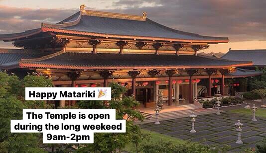 The Temple is open during the long weekend from 9am-2pm, enjoy your great time here!🙂A gentle reminder, please wear long pants or long skirts when visiting the Temple. Thank you!