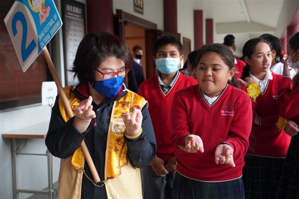 On 19th and 20th May 2022, the 8th 3G4G Cultural Sharing Festival were joyfully received 75 students from Sunnyhills School in Year 4, 80 students from Finlayson Park School in Year 5 and 6 and 90 students from St Pius Catholic School in Year 3 to 8. All the teachers, parents helpers and students came to the Temple excitingly as schedule despite the rain in the morning.