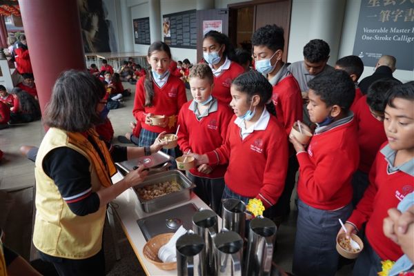 It is worth noting that Finlayson Park School participated in its third year. A big welcome was given to the students and they followed all the instructions about Temple etiquette and greetings such as joining palms, offering incense at the Front Shrine etc. Furthermore, the delicious Laba Rice that was prepared by the Temple brought extra warmth to all of the students on a cold rainy day.