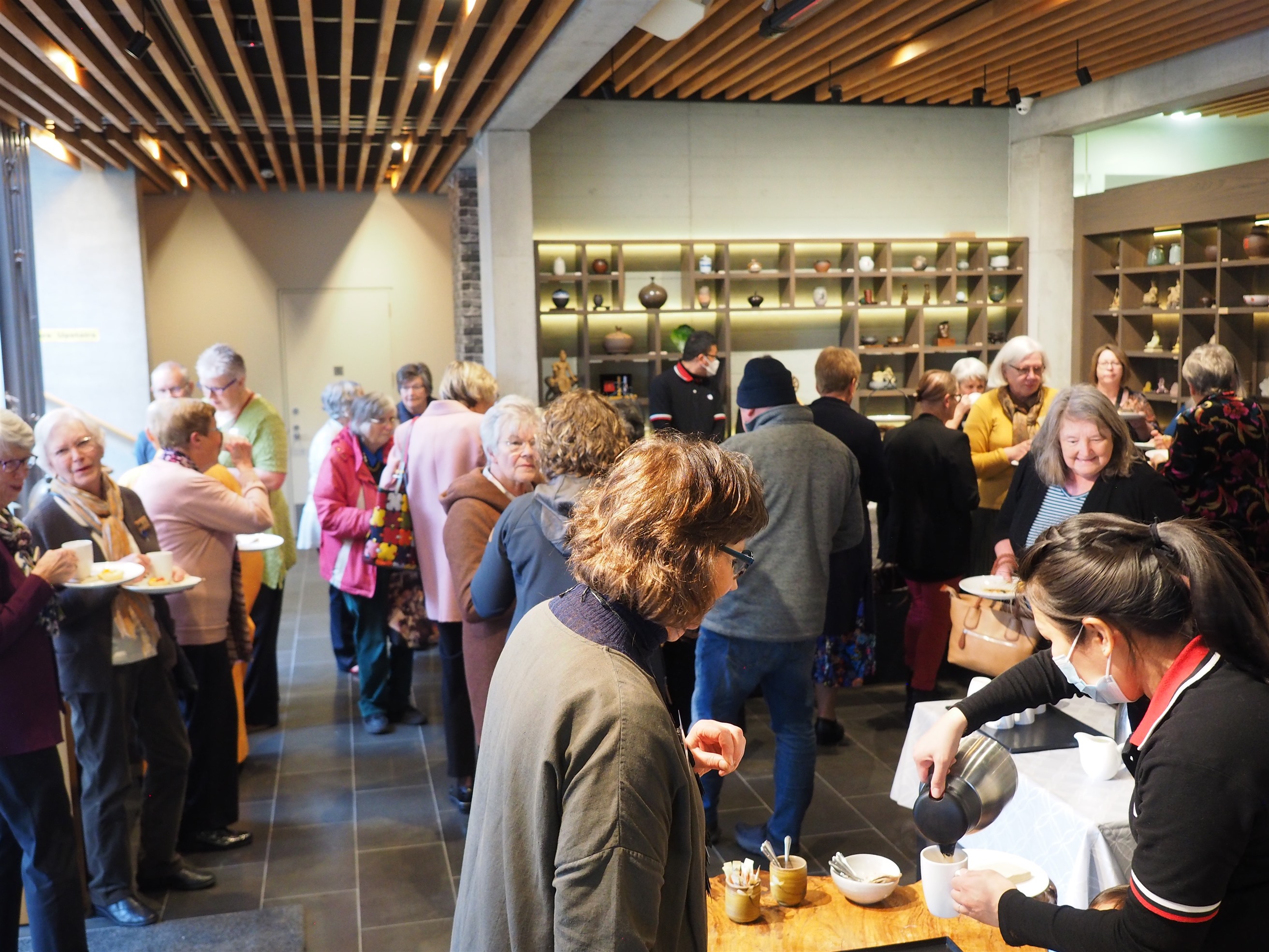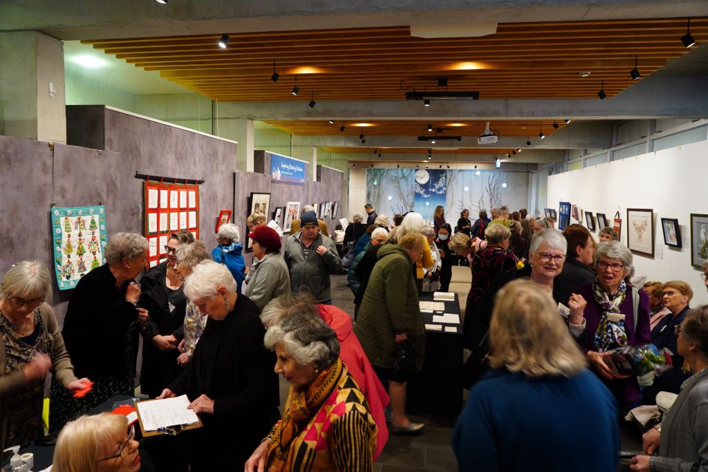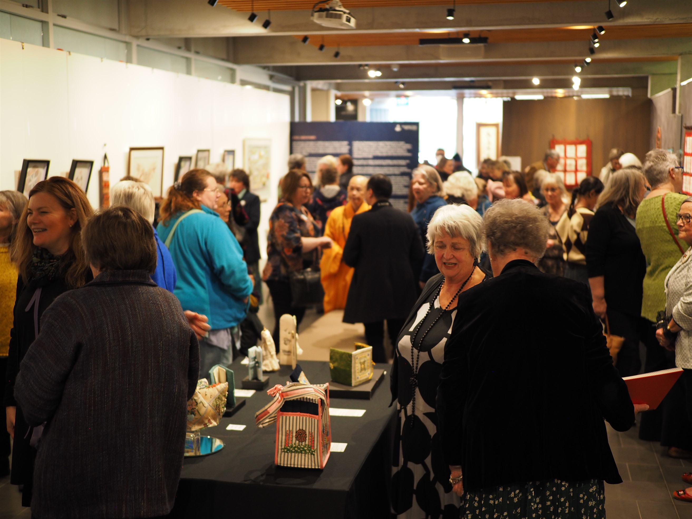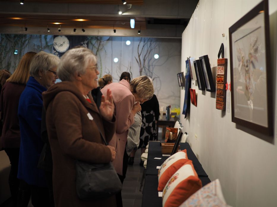 FGY Art Gallery Christchurch held an opening ceremony for the Christchurch Canterbury Embroiderers’ Guild’s Inspiring Stitching Exhibition on August 19. Distinguish Guests attended the exhibition included the Curator of FGY Art Gallery New Zealand, Venerable Abbess Mashin, Chairman of the Canterbury Embroiderers’ Guild, Diane, the Exhibition Coordinator, Marie Meyer, and nearly 100 people made up of members of the Canterbury Embroiderers’ Guild and members of BLIA South Island.
