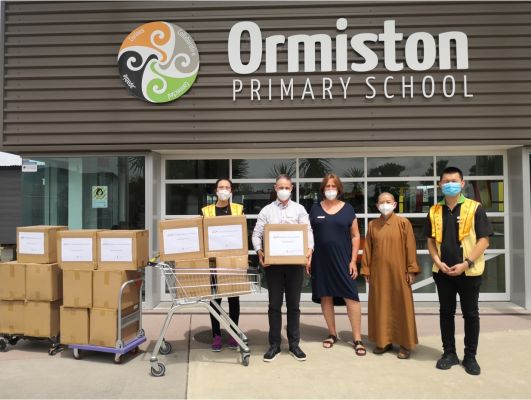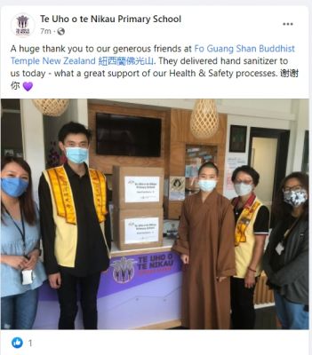 Tracy Prout, Deputy Principal of Papatoetoe Intermediate School, thanked the Temple for the kindness and for teaching students to be grateful for the precious materials. The students experienced multiculturalism besides learning the concepts from the 3G4G Festival, and they are hoping to bring them again this year. Finlayson Park School teacher Minzhen Li is grateful to the Temple for thinking of the school at this difficult time and for sending such valuable supplies.