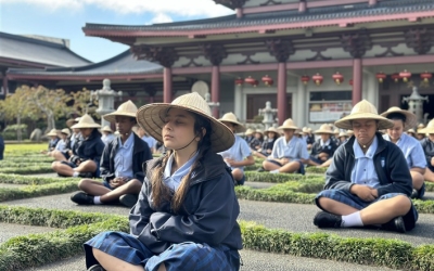 紐西蘭歷史最悠久的男子基督教貴族名校Christ’s College 78位Year 10學生於11月26日及28日至南島佛光山進行跨宗教教學。學生們在學校牧師Cameron Pickering的帶領下,從市區的校園步行至道場學習人間佛教三...