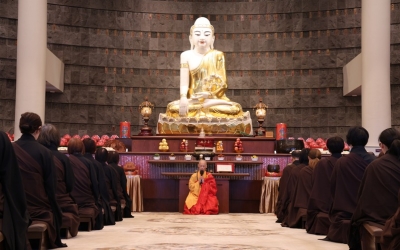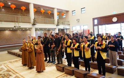 紐西蘭北島佛光山於2025年12月7日上午9點啟建一年一度精進念佛彌陀法會,由紐西蘭佛光山住持滿信法師主法,與諸位法師帶領百位信眾諷誦《佛說阿彌陀經》,繞佛及稱念彌陀聖號,靜心修持,在佛號中止息妄念、清淨身心,與佛菩薩感應道交。