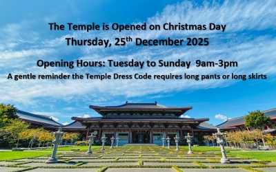 Fo Guang Shan Buddhist Temple Auckland is opened on Christmas Day