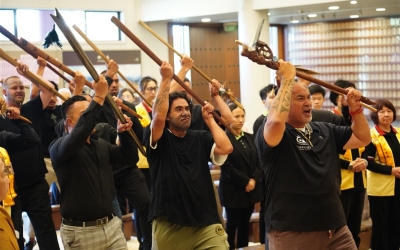 紐西蘭毛利族第一武士暨傳統守護人Tamiaho Herangi-Searancke分別於2025年12 月 2 日及12 月 6 日兩度參訪紐西蘭北島佛光山,除了贈送珍寶綠玉石,並以傳統莊嚴的毛利戰舞Haka禮敬常住三寶及佛光山開山祖師星雲...
